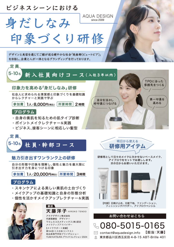 ビジネスシーンにおける、印象力を高める「身だしなみ」研修として、自身の素肌やを知り、